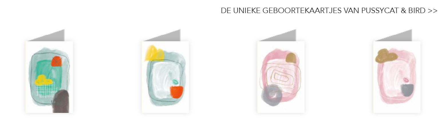 Pussycat and Bird ontwierp speciaal voor ons een unieke collectie geboortekaartjes. Met hun moodboards en ideeen maakte illustrator Julia Kaiser - vier bijzondere, kunstzinnige geboortekaartjes!