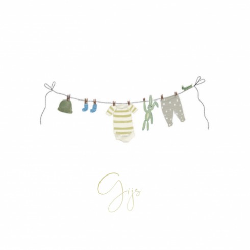 Dubbele 13 bij13 kaart met een waslijntje. Ook verkrijgbaar in blauw tinten en roze tinten.