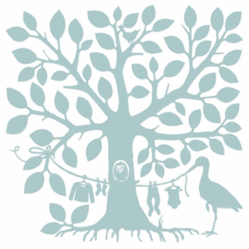 De prachtige gedetaileerde boom is helemaal met de hand geknipt door Geertje Aalders. Een ooievaar, vogels en een uiltje. Een sprookjesachtige tafereel op dit originele geboortekaartje.