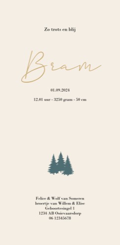Geboortekaartje jongen met broertje samen op avontuur in de bergen. Het kaartje is opgemaakt met mooie zachte groen- blauwe tinten. Pas naar wens aan en bestel jouw proefkaartje!