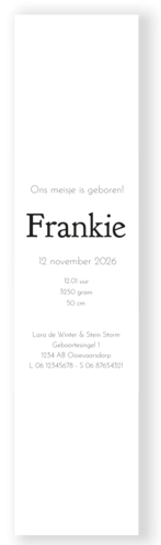 Maak het geboortekaartje helemaal af met een bijzondere kalkwikkel, beschikbaar in twee formaten of voorgedrukt met koperfolie.