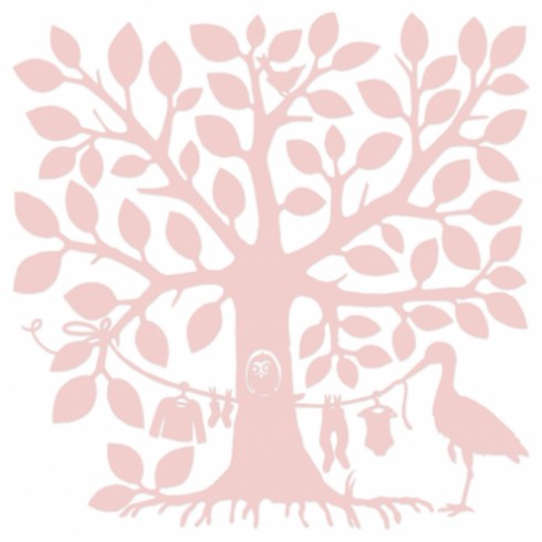 De prachtige gedetaileerde boom is helemaal met de hand geknipt door Geertje Aalders. Een ooievaar, vogels en een uiltje. Een sprookjesachtig geboortekaartje om een klein meisje te verwelkomen.