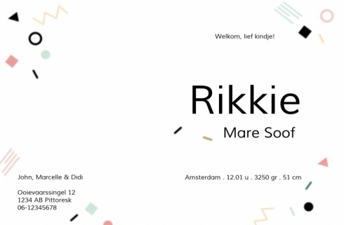Hoera geboren!. Bestel dit vrolijke kaartje nu als geboortekaartje voor jullie kindje. Helemaal leuk met de grafische strooi die zich over het kaartje verspreid als confetti.