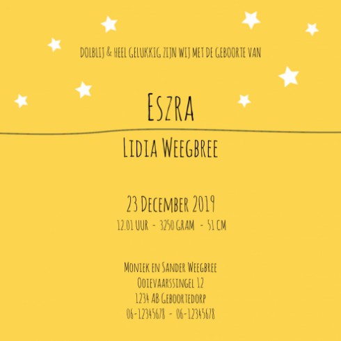 Een eenvoudig geboortekaartje met daarop de prachtige tekst: "Love you to the moon and back". De kaart is in verschillende hippe kleuren verkrijgbaar en zowel in het Nederlands als in het Engels.