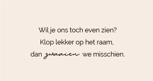 Maar je mag me nu alleen eventjes via het raam zien