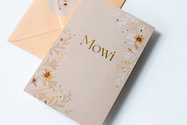 Stijlvolle minimalistische kaartjes waren in 2023 een trend en dat gaat nog even door. Omdat deze kaartjes zo mooi tijdloos zijn. Door mooie lettertypes te combineren met goudfolie (of een andere kleur van onze folies) en te kiezen voor luxe papiersoorten, heb je een kaartje die gewoon prachtig is. De minimalistische trend sluit heel goed aan op de beige trend maar kan met juist heel veel kleur worden toegepast. Less is more. Minimalistische kaartjes zijn eigenlijk de nieuwe klassieke kaart!