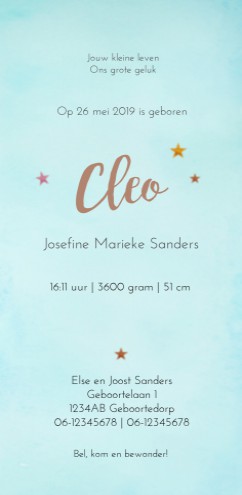 Geboortekaartje - Eenhoorn Cleo Blauw - SV