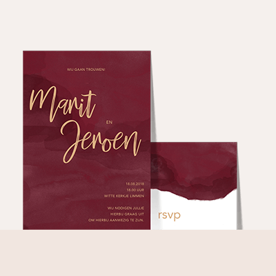 Een trouwhuisstijl bestaat uit al het drukwerk dat je zelf kan maken voor je bruiloft, in een passend thema. Een trouwhuisstijl bestaat bijvoorbeeld uit een Save the Date kaart, trouwkaart en uitnodiging, tafeldecoratie en een welkomstbord. Alle items kan je in hetzelfde thema doorvoeren. Je kan alles zelf ontwerpen of aanpassen in de online ontwerptool. Onze designers staan altijd klaar om je te helpen!